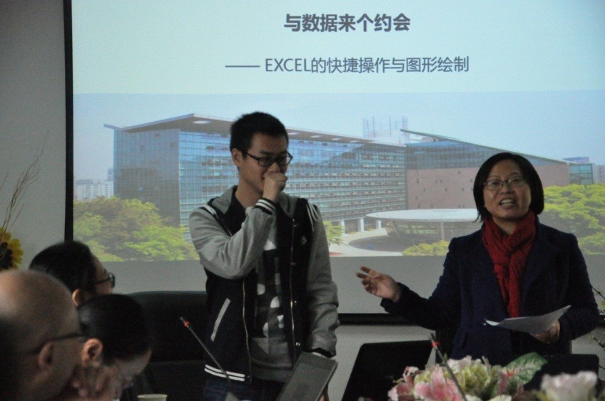 午餐会上生命科学学院李娟老师、数统学院的陈鼎、熊子康同学分享了EXCEL的快捷操作与图形绘制的方法和技巧。会议首先介绍了一些常用函数,包括vlookup、lookup、if等;然后对数据透视表进行了分析讲解,最后介绍了饼状图、折线图、柱状图、散点图、旭日图、雷达图等在教学研究中常见的图形及其绘制方法。本次会议不仅进行了理论讲解,老师们也在现场进行了操作,熟悉某些快捷方式的使用以及作图的具体步骤。