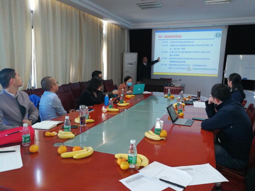 根据“雏鹰护航”2017-2019年度工作计划的要求,我小组于2017年11月1日上午10点在3号楼会议室开展了“新进教师的教学生涯与个人发展”主题研讨活动。本次活动邀请到“桂苑名师”徐晓军教授分享自己的教学生涯,我组成员及高鑫老师小组成员均参加了此次活动。