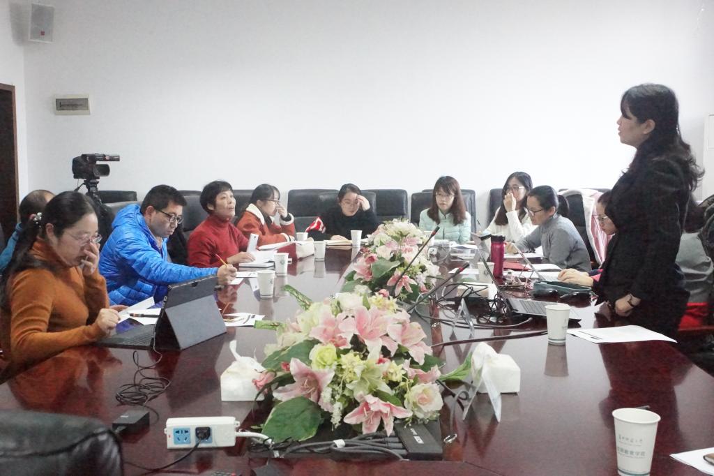 丁妍老师主要从事教师教学发展、教学评估、教育国际化等领域研究,已出版日文专著1部,翻译日、英文专著各1部,发表国内外学术论文三十余篇,独立承担教育部、上海市等多项省部级课题。在上午的主题讲座中,丁老师从“为什么要做教学研究”“什么是教学研究”“如何做教学研究”三个方面和参会教师交流如何进行教学研究,介绍教学研究的基本流程、教学研究问题的基本框架。在下午的工作坊中她以“理论讲授+小组练习”的方式,引导参与教师分组讨论、拟定研究问题,各组讨论热烈,丁妍老师分别给予精彩点评。最后,她通过案例论文深入分析如何确定研究问题、选取研究方法以及制定研究设计,有效地帮助参与教师申报教学研究项目以及输出教学成果。