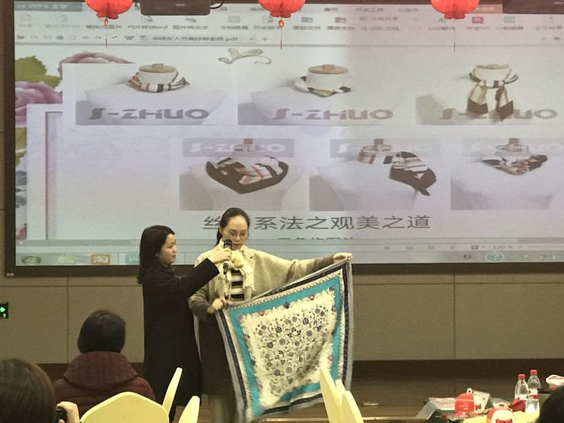女教师服饰如何更得体?“来自湖北美术学院的老师李美丽建议女老师采用丝巾搭配增加魅力值,并现场教授女老师如何系丝巾。她还用日常生活和工作中的女性教师着装的实际案例,从正反两个方面为大家介绍了女性教师合理着装的原则、原理和诀窍。