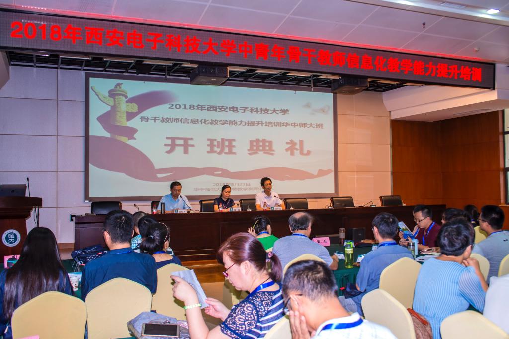 8月23日,西安电子科技大学骨干教师教学能力提升培训华中师大班开班典礼在管理综合大楼103报告厅正式举行,开班典礼简短但隆重。华中师范大学教师教育学院院长、教师教学发展中心常务副主任洪早清、西安电子科技大学教务处处长肖嵩、华中师范大学教师教学发展中心副主任吴军其以及全体参加培训的107名学员参加了开班典礼。