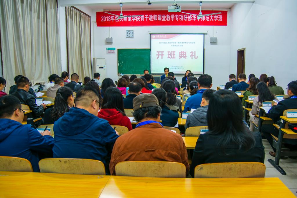 10月22日上午8点,来自包头师范学院共计53名骨干教师齐聚我校教师教育学院A111教室,参加“2018年包头师范学院骨干教师课堂教学专项研修华中师范大学班”开班典礼。出席开班典礼的领导有我校教师教育学院院长洪早清教授、华中师范大学教师教学发展中心吴军其教授、包头师范学院教务处副处长任艳教授。
