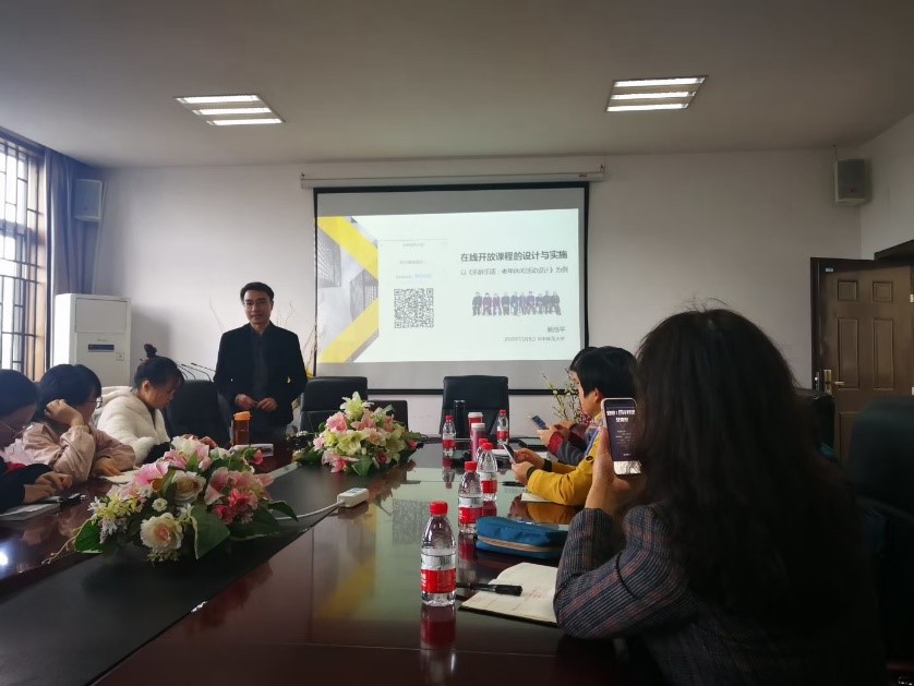(通讯员 李娟、徐敏)在线开放课程和高校传统的面对面教学究竟是什么关系?它的目标、运行与实施要遵循怎样的规则才能真正成为受学生欢迎的“金课”? 带着这些疑问,2018年11月8日下午,我校教师发展社群的老师们在教师教育学院B403室聆听了来自福建农林大学的吴旭平博士所做的“在线开放课程的设计与实施”讲座,在吴博士轻松幽默而又颇具深度的演讲中领略了在线开放课程建设前沿探索者的初心与睿见。