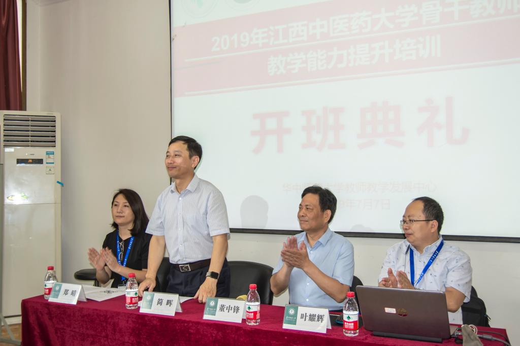 7月7日上午8点30分,江西中医药大学骨干教师教学能力提升培训华中师大班开班典礼在我校教师教育学院A501教室正式举行。华中师范大学教师教育学院副院长董中锋、江西中医药大学副校长简晖、江西中医药大学教务处处长叶耀辉、江西中医药大学人事处处长郑晴以及江西中医药大学的56名骨干教师参加了本次开班典礼。